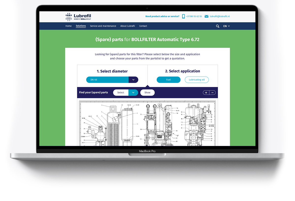 Deze innovatieve tool, die we speciaal voor u hebben ontwikkeld, leidt u eenvoudig naar precies dát onderdeel wat u voor uw Boll & Kirch filter zoekt. Uiteraard biedt de tool naast de mogelijkheid om meteen veilig een offerte op te vragen ook alle technische informatie. Waar u ook bent, met deze online tool zijn we altijd binnen uw bereik. En dat in een paar simpele stappen.